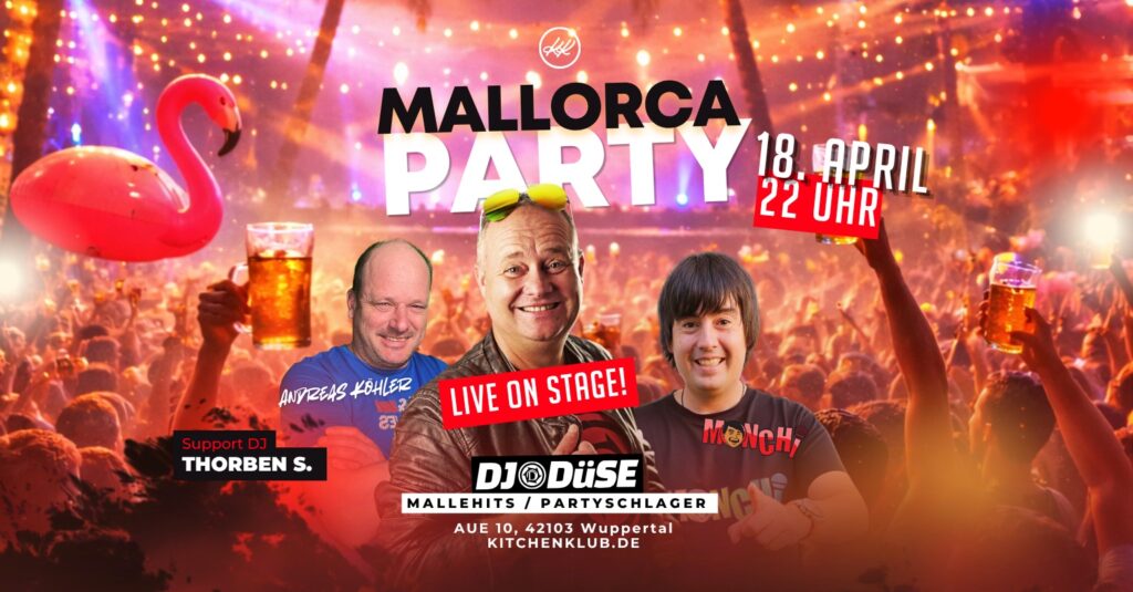 Mallorca Party im KitchenKlub ☀️🍻 Aue 10, 42103 Wuppertal Beginn: 18.04.2026 , 22:00 Uhr Ende: 19.04.2026 , 05:00 Uhr Tickets ab 10,00€