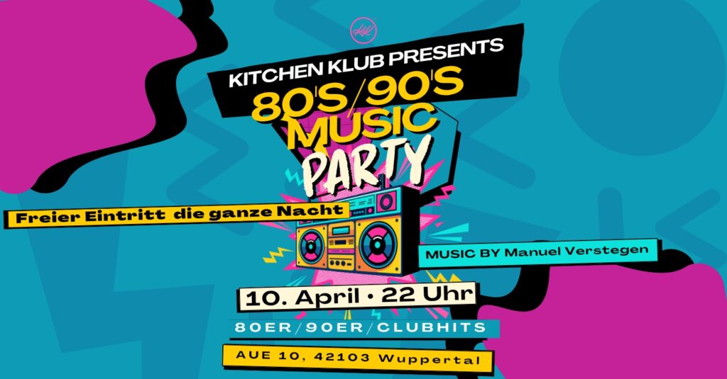 🕺✨ 80er / 90er Party im KitchenKlub ✨💃 Aue 10, 42103 Wuppertal Beginn: 10.04.2026 , 22:00 Uhr Ende: 11.04.2026 , 05:00 Uhr Zur Veranstaltung