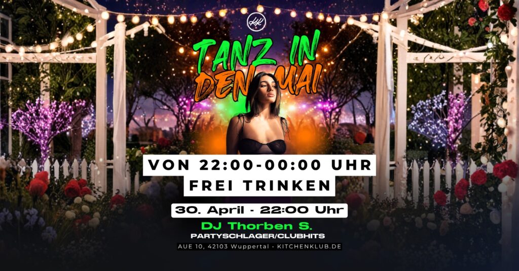 Tanz in den Mai – 2 STUNDEN FREI TRINKEN Aue 10, 42103 Wuppertal Beginn: 30.04.2026 , 22:00 Uhr Ende: 01.05.2026 , 05:00 Uhr Tickets ab 10,00€